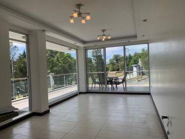 Área social se abre a una terraza privada para ubicar muebles de exterior, este espacio ofrece conexión con el entorno y una linda vista.