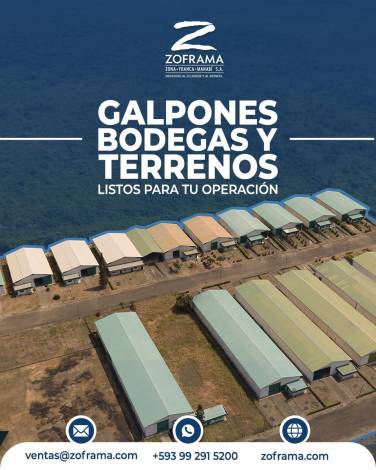 Venta de Bodegas-Galpones, desde 650 metros cuadrados hasta 1500 metros cuadrados, con precios de oportunidad, 300 usd por metro cuadrado de Galpón. Ubicados en perímetro cerrado del Parque Industrial, en el kilómetro 5,5 de la vía Montecristi la Pila. Parque con seguridad permanente, servicios de montacargas, y Bascula camionera.