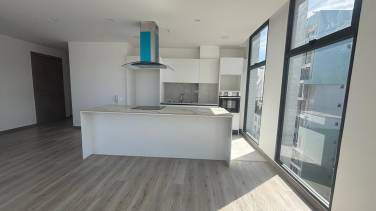 - Área social y cocina abierta. La cocina viene equipada con plancha a inducción, horno y extractor de olores.