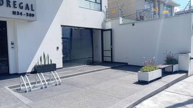 Parqueadero para bicicletas y amplia zona frontal para estacionarse.