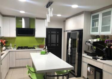 Cocina cerrada con anaqueles alto bajos modernos y funcionales