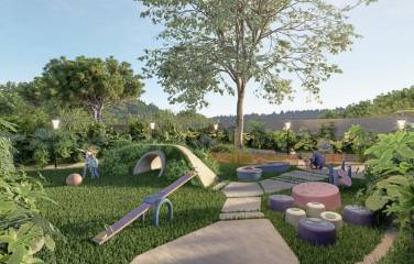 Áreas verdes con juegos infantiles y zona para mascotas.