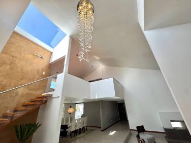 Urbanización Privada Casa Independiente Espacios con óptima distribución Dos Plantas 584 m2 de construcción 1492 m2 de terreno Ambientes abiertos y luminosos I Hall de ingreso I Sala de doble altura Comedor con ventanales grandes Amplia cocina completamente equipada con comedor del diario y vista a la piscina Sala de juegos Sala de TV Máster con Walk-in Closet, baño con hidromasaje2 Habitaciones secundarias con baños completos Estudio con baño completo y Gimnasio Baño social Cuarto de máquinas, lavandería y planchado Cuarto de servicio Jardin 6 Parqueaderos Bodega