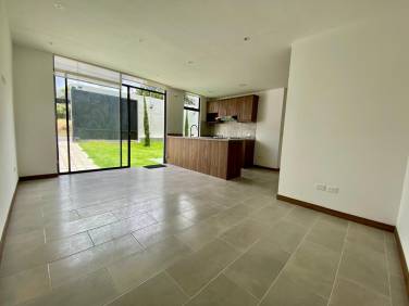 -Sala, comedor, cocina tipo americana y las habitaciones con ventanales hacia el jardín