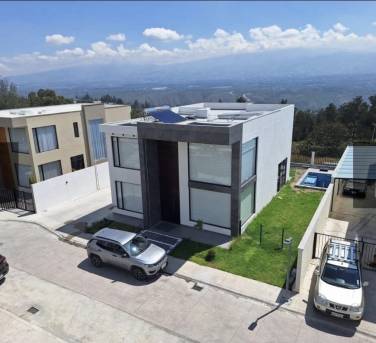 Vendo espectacular casa Nayon sector Inchapicho, linda vista, casa no adosada, dentro de urbanización privada, es un conjunto de 6 casas con diseño lineal, moderna, con ventanales piso techo.