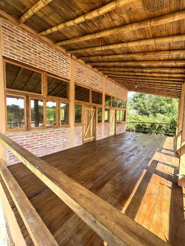 La funcional distribución incluye un solo dormitorio muy grande, con su baño muy grande también, una cocina súper luminosa y funcional, que se une al enorme porche, balcón techado o área social del frente de la casa, donde se puede instalar un comedor, una sala de estar rústica, hamacas, plantas, etc. En este ambiente, te sentirás como si estuvieras acampando en el bosque, rodeado de naturaleza, en tu propia casa! Luego, en todos los ambientes cerrados, los amplios ventanales en 360 grados aseguran el contacto con la naturaleza, la luz y ventilación natural.