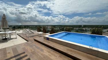 Área social de Terraza gigante con jacuzzi grande, área para eventos, gimnasio, baños sociales, área de bbq. área verde, etc