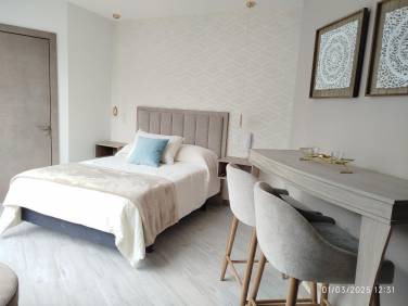 - Dormitorio con cama de 2 plazas, closet, TV, baño completo