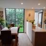 Áreas Sociales Impecables: Moderna cocina abierta con mesón e isla, plancha eléctrica y horno. Sala con chimenea decorativa y comedor.