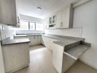 - Cocina cerrada con muebles altos y bajos, espacio de alacena