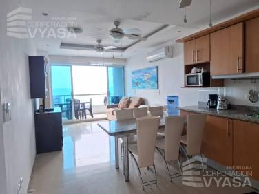 En Tonsupa, en el edificio Diamond Beach, piso 7, departamento de 98,00 m2, se vende completamente amoblado y equipado, sala, comedor, cocina, 2 dormitorios, 2 baños completos, amplia terraza, excelente vista desde todos los ambientes, 2 estacionamiento y bodega.