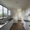 Cocina tipo americana con muebles altos y bajos con espacio para lavadora de vajilla