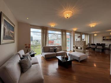 Sala y comedor sumamente espaciosa, con salida a un balcón.