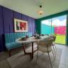 Sala, comedor con vista al jardín